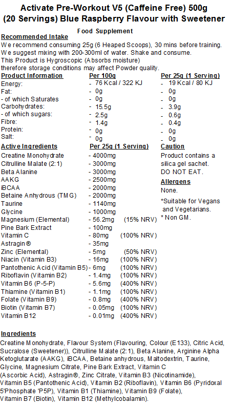 Activate Pre Workout V5 (Caffeine & Stimulant Free)