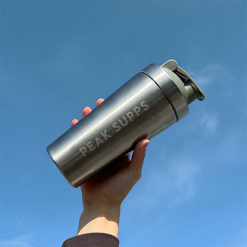Peak Supps Stainless steel Shaker is compact, robust, convenient and portable. Ideal for day to day, gym and travelling. Our shaker offers a 700ml capacity and requires minimal mixing effort with our screw tight lid for drip free blending.